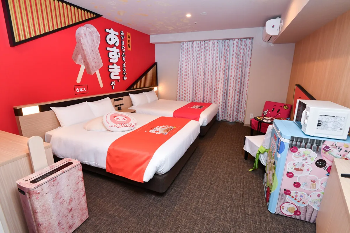 テーマは「くつろぎと興奮が同居する」。このコンセプトルームは井村屋の商品デザインやキャラクターを取り入れ、宿泊者に特別な体験を提供します。客室内では、井村屋の人気商品である「肉まん」、「あんまん」、「あずきバー」が冷凍庫に用意されており、宿泊者は無料で楽しむことができます。これにより、井村屋の魅力を存分に体験できます。