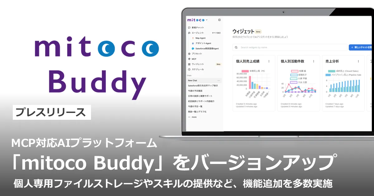2026年1月14日、株式会社テラスカイ(東京都中央区、代表取締役CEO 社長執行役員:佐藤 秀哉)は、MCP(Model Context Protocol)に対応したAIプラットフォーム「mitoco Buddy」の大幅なバージョンアップを行いました。この新しいバージョンでは、業務効率化や情報共有の向上に寄与する様々な新機能が導入され、特に企業のデータ活用をさらにサポートする内容となっています。