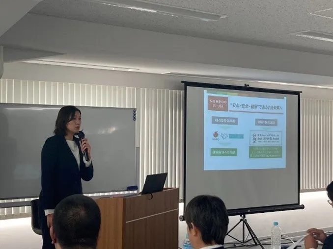 このたび開催された交流会は、様々な団体が集まり、流域治水についての取り組みを共有することを目的としています。流域治水オフィシャルサポーターとして認定されている111団体の中から約30社が集まり、損保ジャパンを含む6社が自社の取り組みを発表しました。