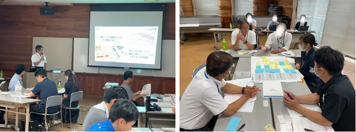 第2部では、参加者をグループに分けてのワークショップが行われ、実際の支援策について活発な意見が交わされました。参加者からは「地域とともに」という方針に共感を示す声が多く寄せられ、非常に前向きな雰囲気が醸成されました。このグループでは、鹿児島県大崎町の課題をテーマに、モビリティとデジタルトランスフォーメーション(DX)を活用した買物送迎サービスのプランを考案しました。参加者からは、具体的な事業の実現に向けた期待感が出るなど、盛り上がりを見せました。