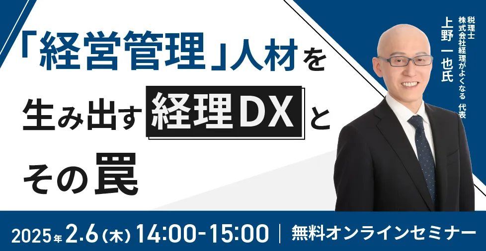 株式会社インボイスが主催する経理DXセミナーが、2025年2月6日にオンラインで開催されます。このセミナーでは、経理業務のデジタル化をテーマに、専門家の上野一也氏が講師を務め、経営管理人材を生み出すためのノウハウや経理DXの導入に関する実例を紹介します。