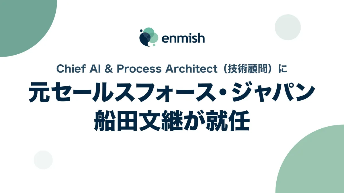 株式会社エンミッシュが、元セールスフォース・ジャパンの船田文継氏をChief AI & Process Architect(技術顧問)に登用した。この決定は2022年2月1日付けで発表されたもので、会社の成長を加速させる巡り合わせといえる。