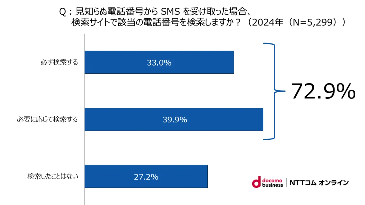 このポータルサイトの運用により、利用者はSMSの送信元番号が信頼できるものかどうかを簡単に確認できるようになります。このサイトはNTTドコモ、KDDI、ソフトバンク、楽天モバイルの4社によって共同運営され、利用者に安心感を提供する大きな一歩となるでしょう。実際、最近の調査では、SMSを受信したユーザーの72.9%が送信元番号を確認するための検索を行っています。これは、詐欺の危険性が増している現状を反映しています。