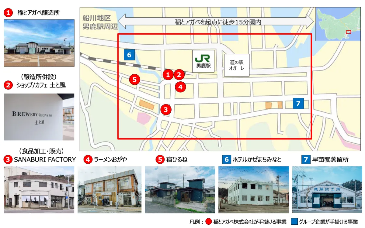 稲とアガベは、既存の醸造方法を基にした新たなジャンル、クラフトサケを製造しています。ただ単にお酒を作るだけでなく、地域の魅力を発信する「地域メディア」としての役割も担っています。醸造所を中心に、男鹿市を訪れた人々が楽しめる街づくりを目指し、活動を展開しています。