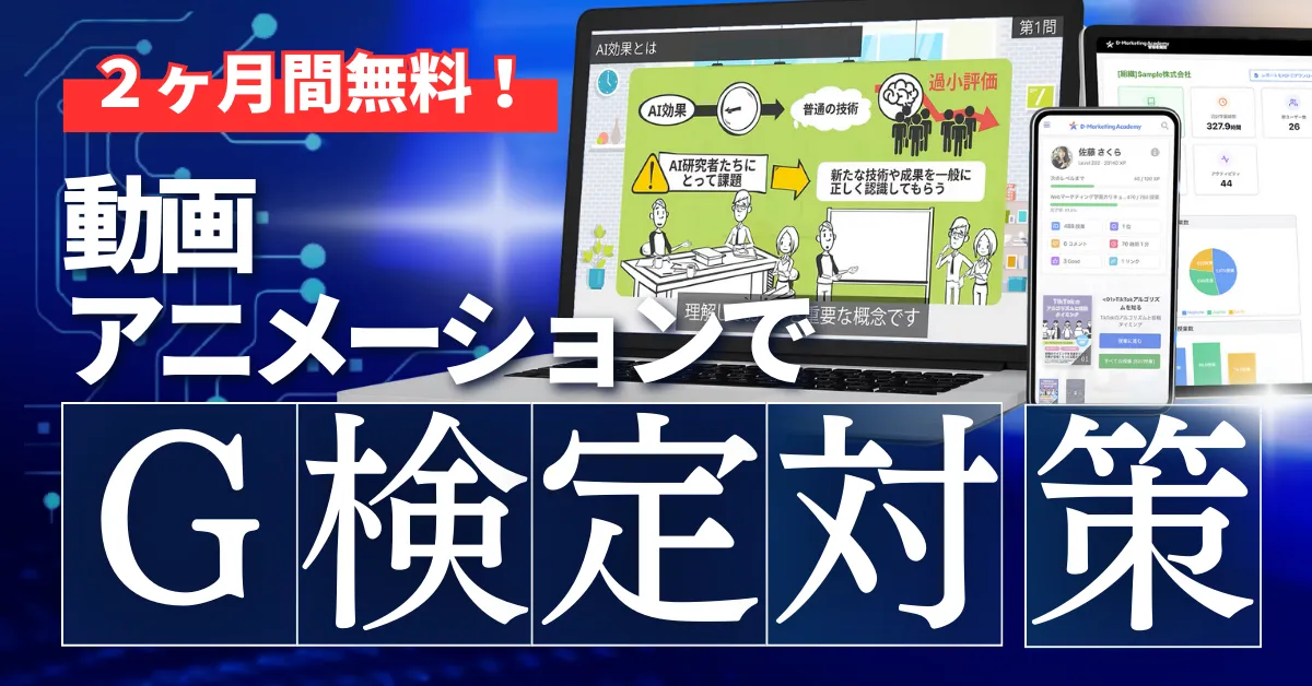 近年、G検定はAIリテラシーの証明手段として注目を集めており、2017年から受験者数は増加傾向にあることが報告されています。このG検定を受験するために、D-Marketing Academyは個人限定で「2ヶ月間完全無料」の特典を用意しています。この機会を逃すことなく、自身のAIに対する理解を深めるチャンスです。