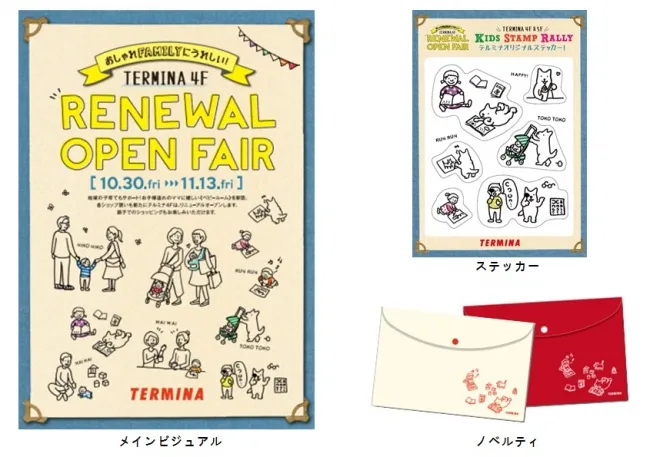 リニューアルオープンを記念して、10月30日から11月3日まで、4階の店舗で1,000円以上のお買い物をした先着200名に「テルミナオリジナルビニールケース」がプレゼントされるノベルティキャンペーンも行われています。また、館内ではスタンプラリーも実施中で、指定のスタンプを集めるとオリジナルステッカーがもらえるイベントも楽しめます。