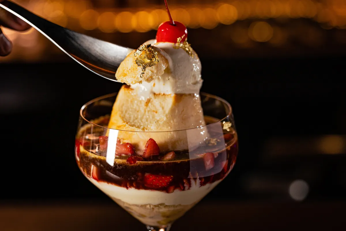 さらに、イベントではパフェを引き立てるペアリングカクテルもあります。アイリッシュコーヒーをリメイクした冷たいアイスドリンク「アイリッシュ・コーヒー」はウィスキーを加え、アメや大人の味を楽しむことができます。ジンジャーエールとアマレットを組み合わせた「アマレットジンジャー」のカクテルもおすすめで、さっぱりとした飲み口が特徴です。