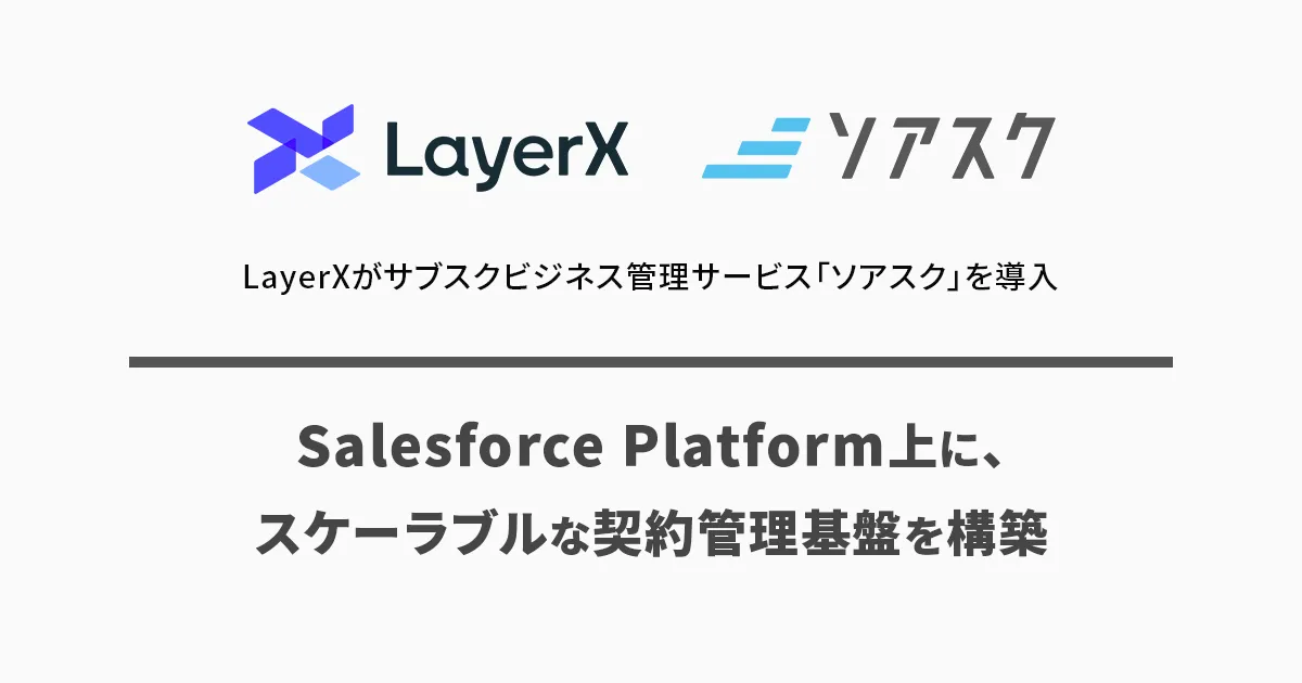 株式会社オプロが提供するサブスクリプションビジネス管理サービス「ソアスク」が、LayerXに導入されました。LayerXは「すべての経済活動を、デジタル化する」という理念のもと、クラウドサービス「バクラク」を展開しており、請求書処理や経費精算、勤怠管理など多岐にわたる業務の効率化を実現しています。