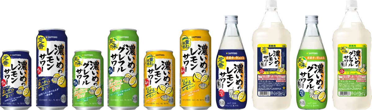 リニューアル後の新商品3種類は「サッポロ 濃いめのレモンサワー」「サッポロ 濃いめのレモンサワー 重ね檸檬」「サッポロ 濃いめのグレフルサワー」を展開!