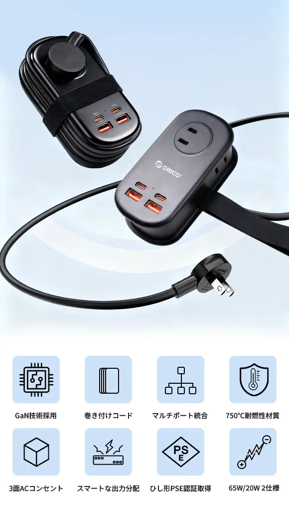 私たちの日常生活で充電は欠かせないものとなっています。そして、外出先でもデバイスの充電が必要な場面は多くなっていますが、複数の充電器を持ち歩くことは非常に不便です。そんな時に救世主として登場したのが、ORICOの「AP3 65W」です。この製品は、最大出力65W、GaN急速充電対応、さらに最大で7台のデバイスを同時に充電できるというスマート電源タップです。これ1台あれば、すべてのガジェットの充電がスッキリと解決します!