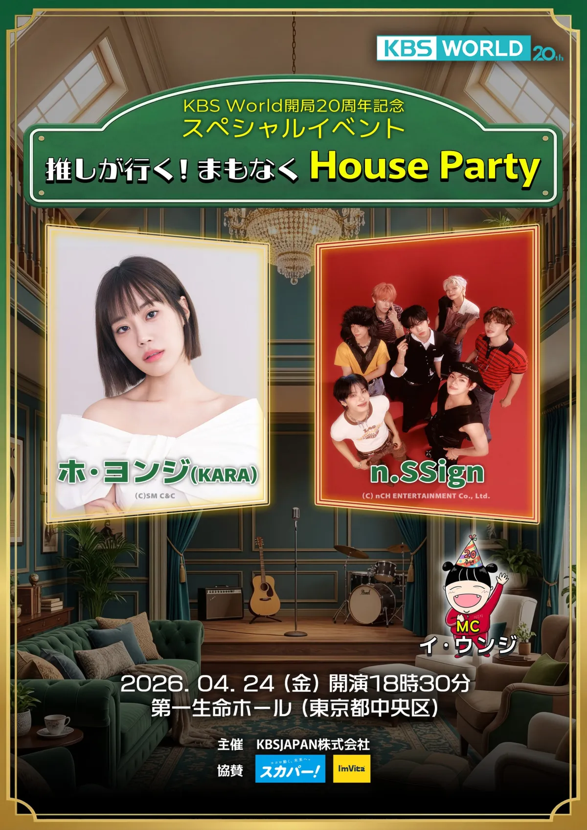 スカパー!は、KBS Worldの開局20周年を記念して、特別なイベント「推しが行く!まもなく House Party」を2026年4月24日(金)に東京の第一生命ホールで開催します。このイベントは、韓流を愛するすべてのファンの皆様に感謝の気持ちを込めたプレミアムな企画となっております。