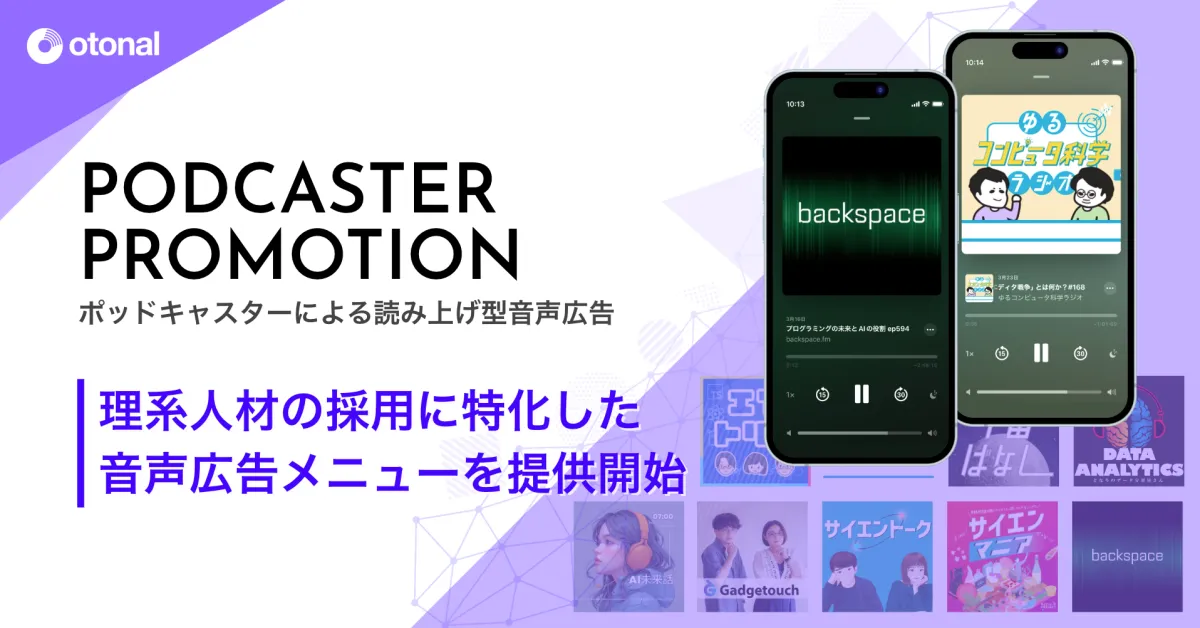 株式会社オトナルは、理系学生の採用に特化した音声広告プラン「PODCASTER PROMOTION」の新メニューを発表しました。このプランは、科学やエンジニアリングなどのテーマを扱う理系ポッドキャスト番組を通じて、企業の採用活動や広報活動を支援します。