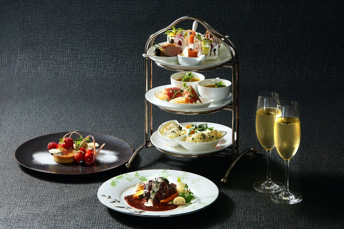 このハイティーはホテル内の「カフェ&バー プラザ」で提供され、緑豊かな中庭での利用が特徴です。特にこの季節にぴったりな冬メニューが揃っており、心も体も温まる料理が提供されます。メイン料理には、茨城県のブランドポーク「常陸の輝き」を使用したとろけるような味わいの赤ワイン煮が用意され、さらに温かいグラタンもメニューに含まれています。これらの料理は、厳選された旬の食材を使用し、シェフのこだわりが詰まっています。