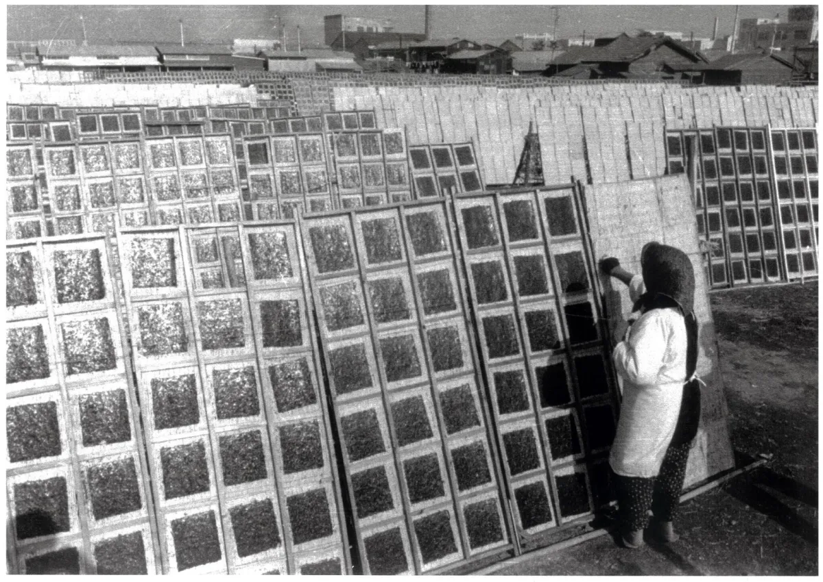 品川の海苔作りは、江戸時代から始まりました。当時は、南品川猟師町や大井御林猟師町など、地域の漁業の人々が養殖を行っており、江戸前海苔として非常に有名でした。明治時代に入ると、この海苔作りはさらなる発展を遂げましたが、大東京港の建設による埋立てが進む中で、1961年にその歴史は幕を閉じることになります。
