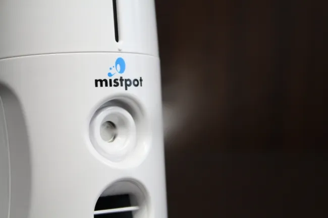 昨年の猛暑では、残念ながら1,500人以上が熱中症で亡くなりました。これを受けて、来年の東京五輪でも多くの観客が高温の中での体験を余儀なくされると予想されています。そんな危険な暑さ対策として、mistpotは設計されました。その特長は、マイナス3度のパフォーマンスによる涼しさです。独自開発の「ドライミスト」技術を使って、顔や首にピンポイントで気持ちよく風を送ります。