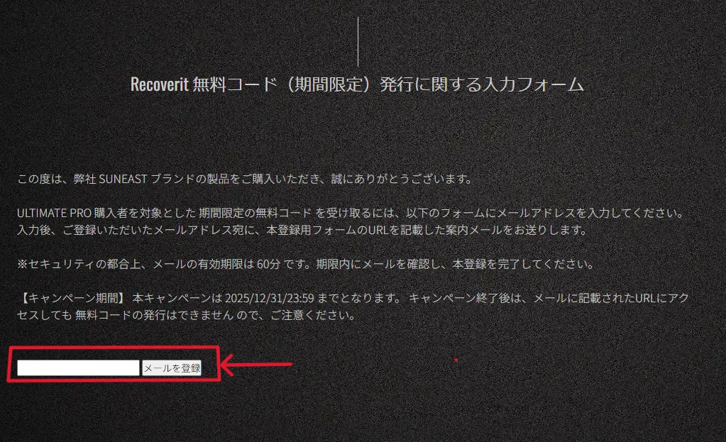 3. メールアドレスを入力し、届いたメールのURLにアクセス