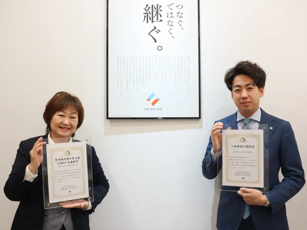 賃貸管理ビジネス研究会は、自社の賃貸管理戸数を増やすだけでなく、社会にとってより良いサービスを提供する企業が集まった場です。毎年、各会員企業の管理戸数の増加を競い、最も高い増加率を記録した企業が「管理戸数伸び率大賞」として認められます。これまでの努力が実を結び、太平堂不動産は名誉ある受賞を果たしました。
