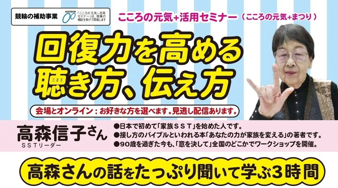 2025年7月19日、NPO法人地域精神保健福祉機構・コンボが主催するセミナー「回復力を高める聴き方、伝え方」が開催されます。このセミナーは、高森信子さんを講師に迎え、メンタルヘルスを支えるためのコミュニケーション技術を学ぶ貴重な機会です。