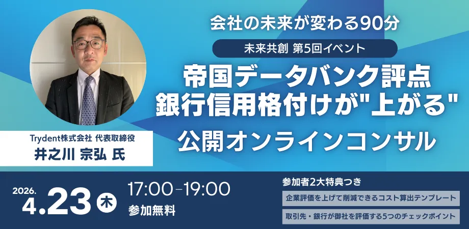 株式会社ロードマップが主催する「未来共創コミュニティ」では、中小企業経営者向けに特別な無料セミナーを実施します。講師には中小企業診断士である井之川宗弘氏を迎え、参加者は帝国データバンクの評点を利用して自社の経営改善につなげることができます。このコンサルでは、90分間で企業の信用評点を効果的に向上させるための実践的なアプローチを学びます。