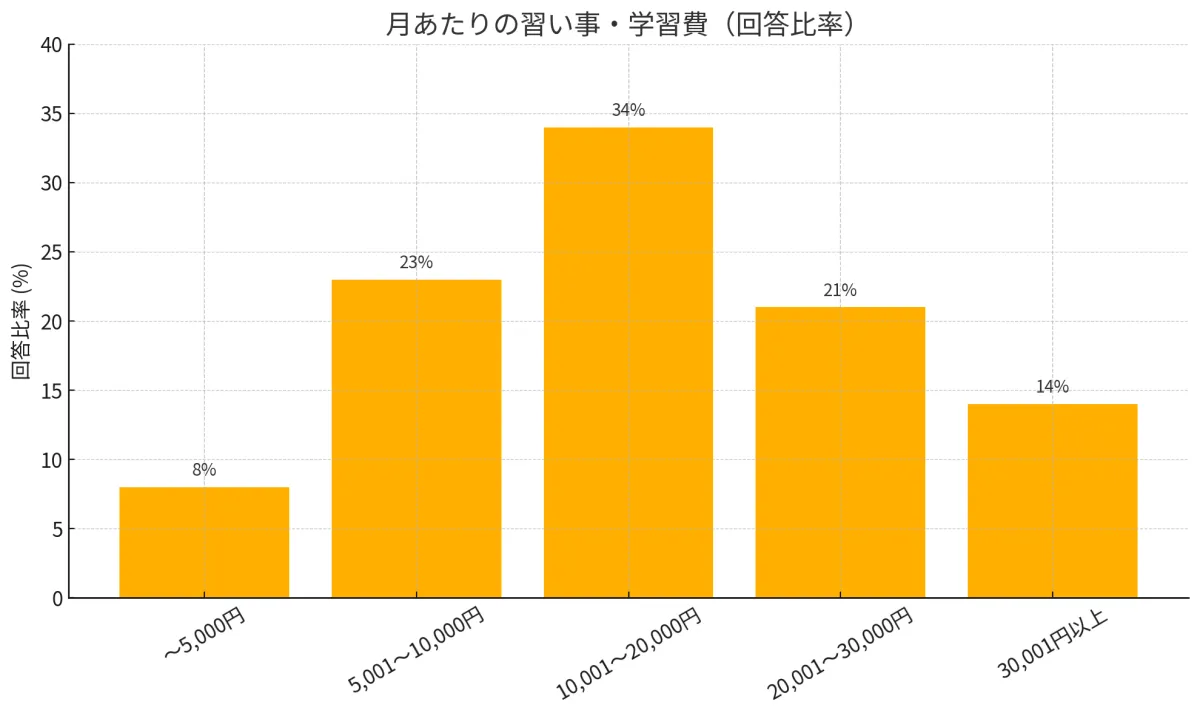 この調査において、特に目を引くのは34%の家庭が「10,001〜20,000円」という層に集中していることです。さらに、約1割の家庭では塾や通信教育に加えて家庭教師を利用していることが明らかとなりました。