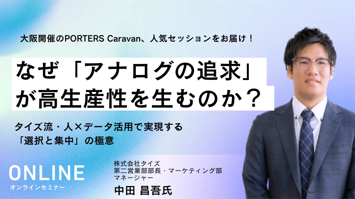 株式会社タイズは、ここ最近急成長を遂げた人材ビジネス企業の一つです。タイズの成功の裏には、あえてアナログを追求する姿勢があります。第二営業部部長の中田昌吾氏は、業務のデジタル化が進む中で敢えて「人との対話」を重視した結果、売上を2.5倍にまで引き上げることができました。このセミナーでは、タイズの成功に導いた「人×データ」の活用法について詳しく解説されます。