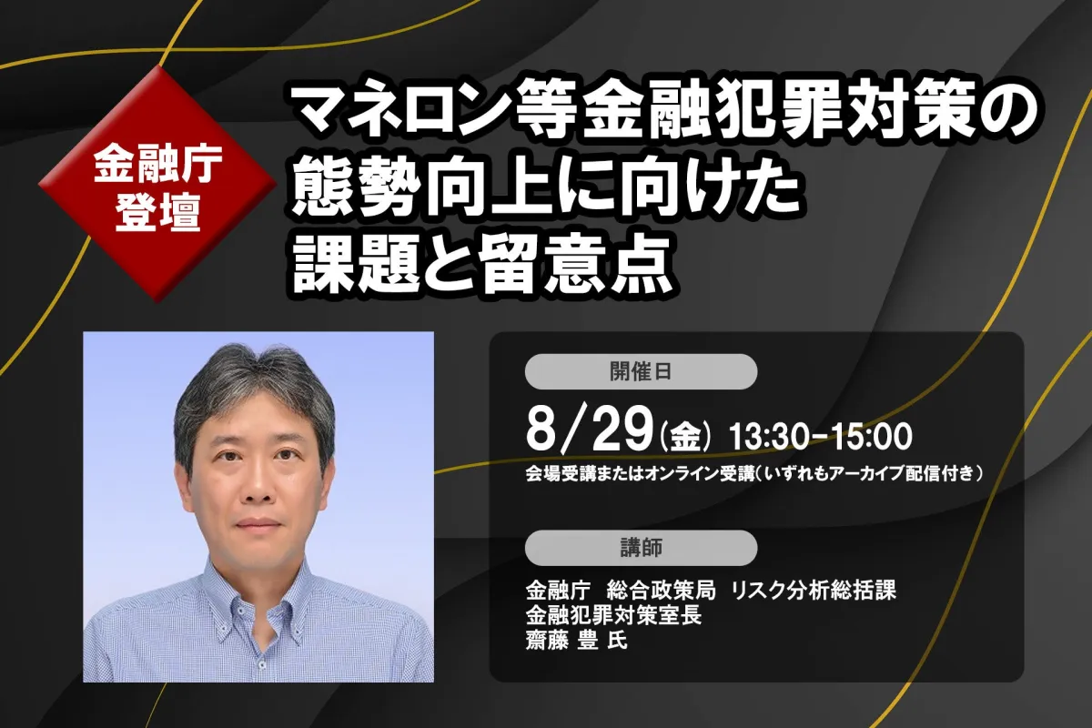 株式会社セミナーインフォは、2025年8月29日(金)に「マネロン等金融犯罪対策の態勢向上に向けた課題と留意点」と題したセミナーを開催します。講師には金融庁総合政策局から齋藤豊氏を迎え、金融犯罪に対する対策と今後の方針について詳しく説明していただきます。