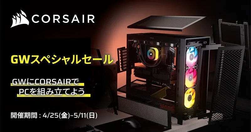 株式会社アスクが、2025年4月25日から5月11日までの間、CORSAIRの製品に特別セールを実施することを発表しました。このセールでは、PCケース、電源ユニット、水冷一体型CPUクーラー、ファンなどのアイテムが対象となり、最大25%の割引が適用されます。