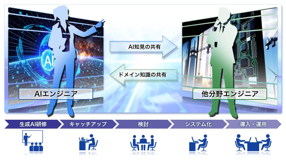 エスユーエスは独自のAIエンジニアの育成プログラムを実施しています。IT領域におけるWeb/インフラエンジニアや、機械・電気などのハード領域のエンジニアに対してもAI教育を提供し、広範な技術向上を目指しています。これにより、現場のエンジニアがAIを基にした課題解決能力を高め、製品開発や業務改善を実現することを目指しています。