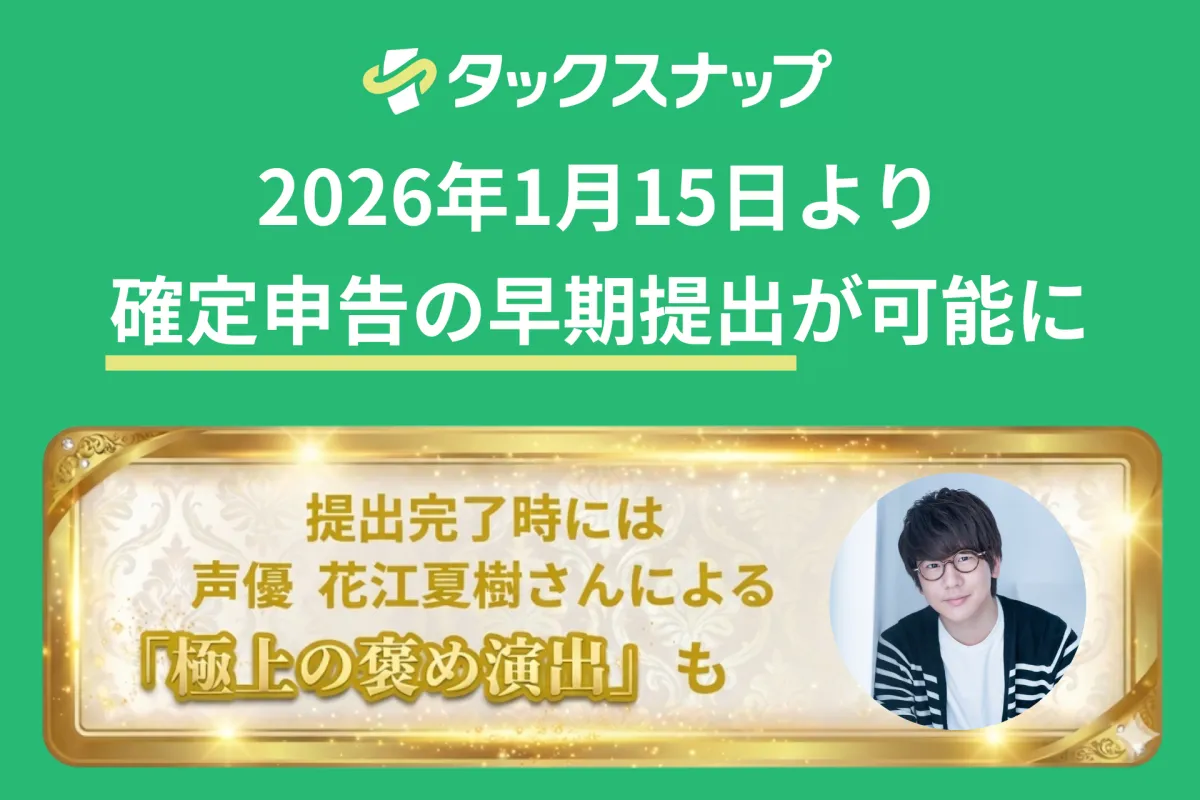 タックスナップは、2026年1月15日より確定申告の早期提出が可能となることを発表しました。この新機能により、利用者は通常の提出開始日よりも早く申告を終わらせることができ、ストレスを軽減することが期待されています。アプリの特別演出として、人気声優・花江夏樹さんが申告完了を祝福するという嬉しいサプライズも用意されており、これが多くの注目を集めています。