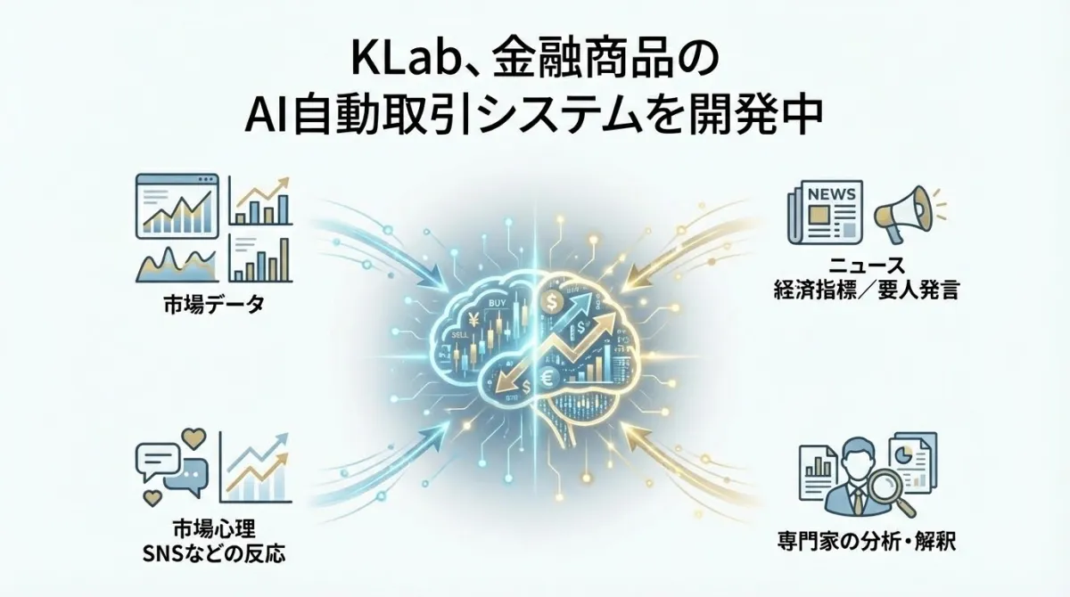 KLab株式会社は、東京都港区に本社を構える企業で、主にモバイルゲームの開発を行ってきました。最近、AIを利用した金融商品の自動取引システムを開発しているとの情報が飛び込んできました。この新しい取引システムは、従来の自動取引の枠を超えて、さまざまな市場データを総合的に分析し、最適な取引タイミングを見極める能力を持っています。