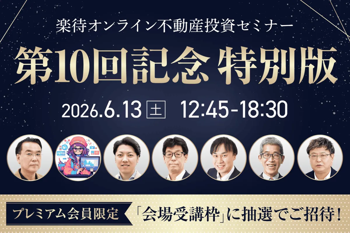 国内最大の不動産投資プラットフォーム「楽待」が、記念すべき第10回のオンライン不動産投資セミナーを2026年6月13日(土)に開催します。これまでの9回のセミナーは高い評価を得ており、多くの参加者から「次回も参加したい」との声が寄せられています。
