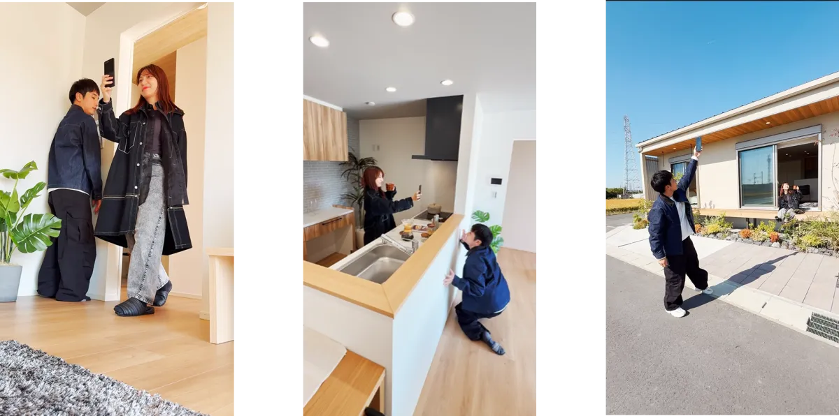 今作では、再びインフルエンサー「あやんぬ」が登場し、モデルハウス内を巡る様子をお届けします。さらに、「かっちゃん」がその様子を先回りしながら撮影するため、視聴者はまるでその場にいるかのような臨場感を味わうことができます。