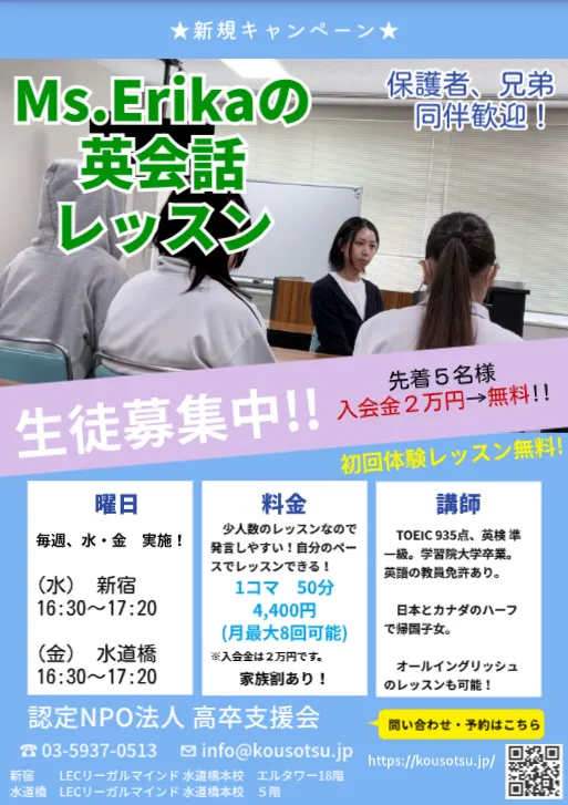 認定NPO法人高卒支援会が、不登校や引きこもりの子どもを対象にした英会話講座を新たに開講しました。この講座は、通常の学び方では難しい環境にいる子どもたちが言語を学ぶ場として設計されています。