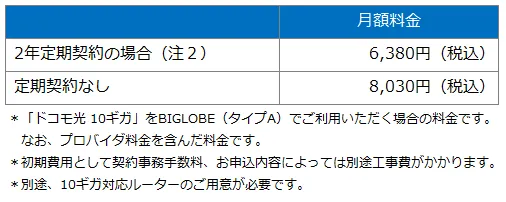 BIGLOBEの「ドコモ光 10ギガ」の月額料金に関しては、詳細が公式サイトに掲載されています。利用者は、専用のWebサイト、NTTドコモのホームページ、またはドコモショップにて申し込みが可能です。公式サイトでは、利用可能なプランの詳細や料金の確認ができます。