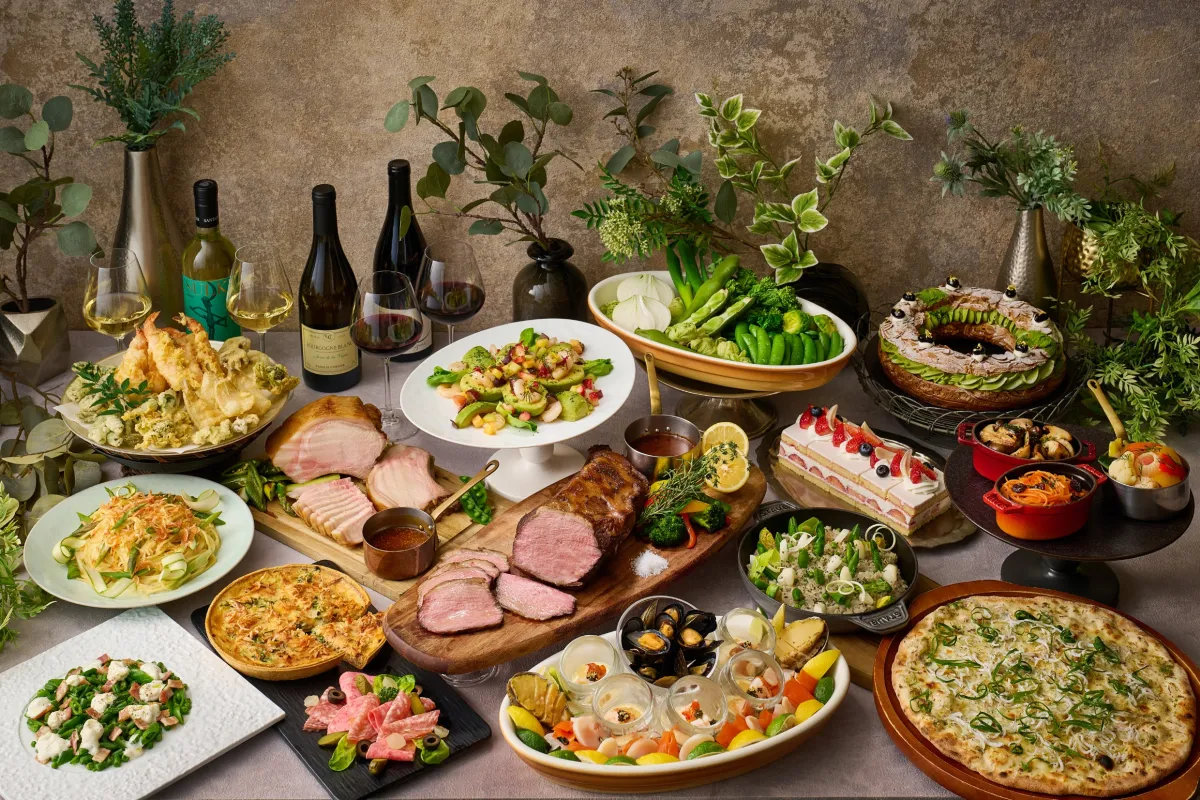 ディナーバイキングでは、しらすや桜エビ、新じゃがいも、春キャベツなど、春ならではの食材が満載です。これに加え、九条ネギや水尾の柚子、西京味噌など京都の素材を使用した料理も口にでき、京都ならではの特別なひとときを味わえます。さらに、月替わりで提供されるメニューも魅力の一つ。例えば、4月には丹波地鶏を使ったポトフや新玉葱とモリーユ茸のアレンジが登場します。
