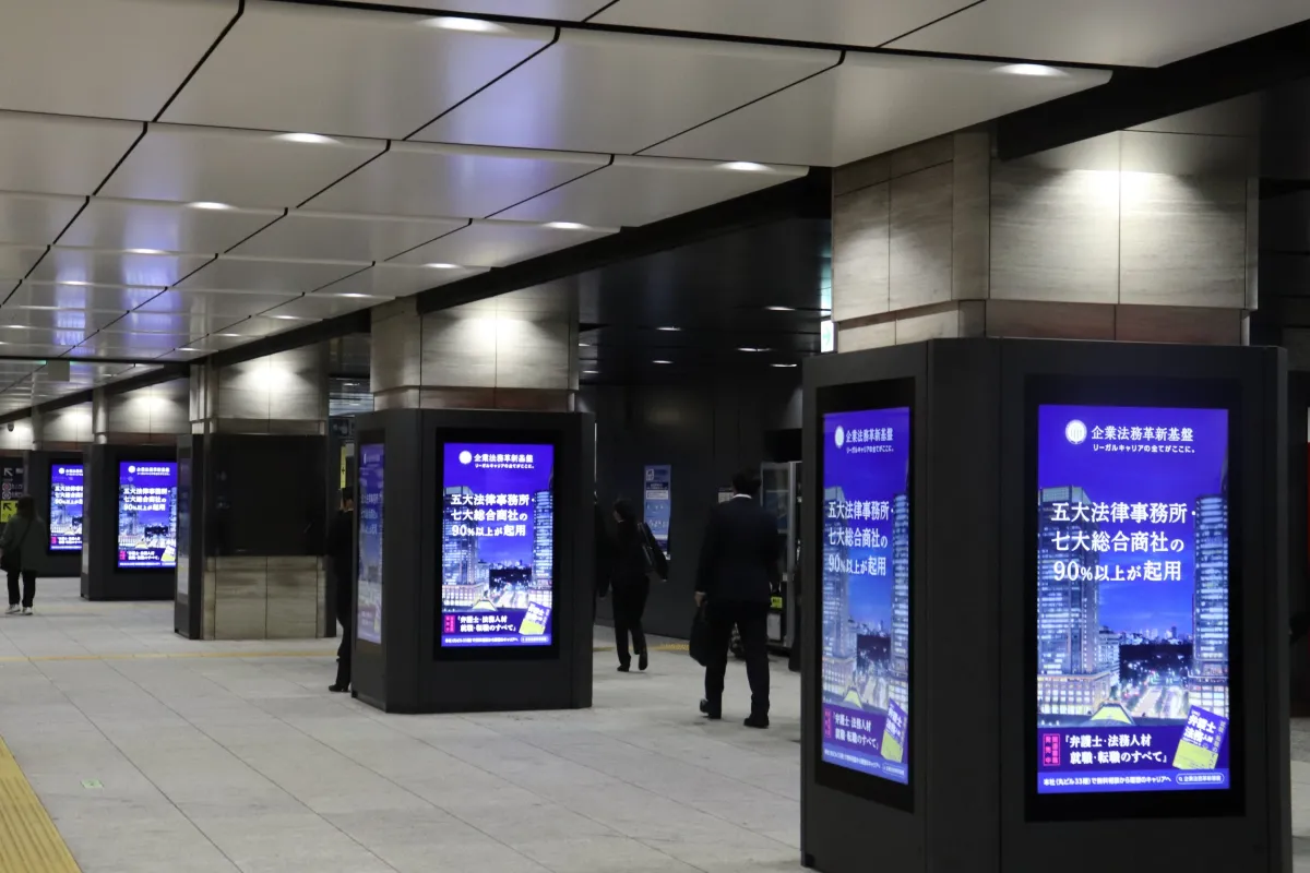 企業法務革新基盤株式会社がこの度、大手町駅にて特設デジタルサイネージ139面を使用し、広告を放映することになりました。2026年4月1日から30日までの間、東京のビジネスエリアの中心である大手町駅において多くの人々に弊社のサービスを知っていただける貴重な機会となります。