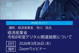 一般財団法人日本情報経済社会推進協会、略してJIPDECは、2026年3月26日(木)に「令和8年度経済産業省デジタル関連施策について」というテーマの無料セミナーを開催します。このセミナーでは、デジタル技術の革新や生成AIの進展により、企業がどのようにビジネス変革を遂げ、この変革に対応すべきかが探求されます。