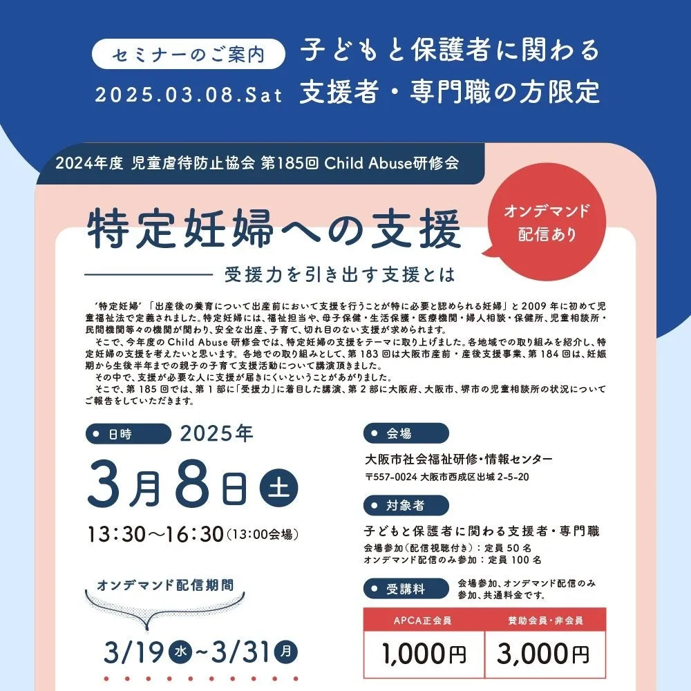 2025年3月8日、大阪市において医療・福祉の専門職を対象にした「特定妊婦への支援」セミナーが開催されます。このセミナーは、特定妊婦に関する理解を深め、より良い支援のあり方を探ることを目的としています。