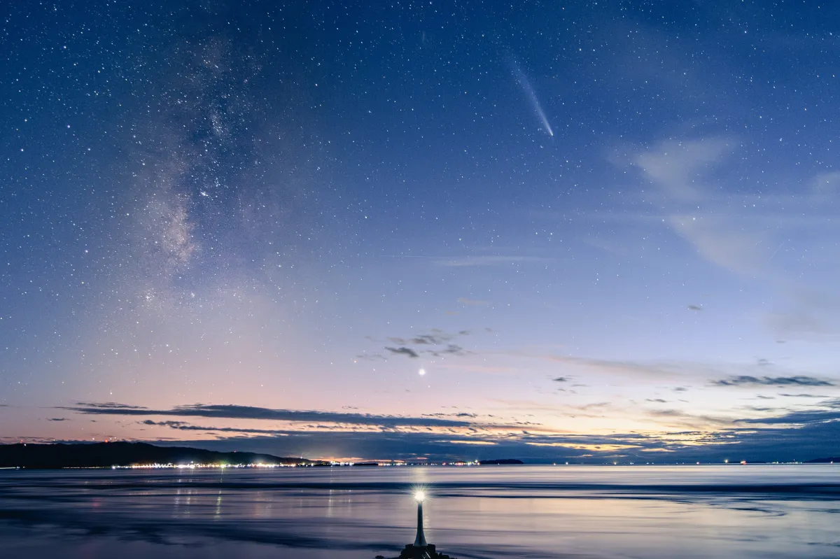 受賞者コメント:「南島原の夜空に広がる天の川と、紫金山・アトラス彗星、金星、そして海を照らす瀬詰崎灯台の光が重なる瞬間を捉えました。何万年も前の星の光と、今生きる私たちの営みが静かに交わる様子に心を打たれ、この岬が人と時を導く存在であり続けることを願っています。」