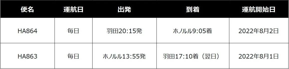 ハワイアン航空は、2023年8月1日(ハワイ現地発)より、羽田とホノルル間の定期直行便を毎日運航(週7便)で再開することを発表しました。