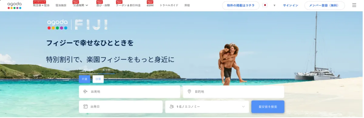 新設されたフィジー特集ページでは、Agodaが提供する情報をもとに、旅行検討から予約までをスムーズに行えるよう工夫されています。このページには、特別なホテル特典や魅力的な写真、ビデオコンテンツが盛り込まれ、訪れる人々がフィジーの自然の美しさや文化、リゾート体験により一層の理解を深められるよう工夫されています。