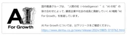 dentsu Japanがこのプロジェクトを推進しており、企業としての成長と社会貢献を融合させた独自のAI戦略「AI For Growth」を掲げています。近年、国内企業はデジタルトランスフォーメーション(DX)を進めており、その中でAIの活用ニーズも急速に高まっています。電通グループでは、AIに関する知識や技術を備えた人材を育成し、業務の効率化を図る方針です。