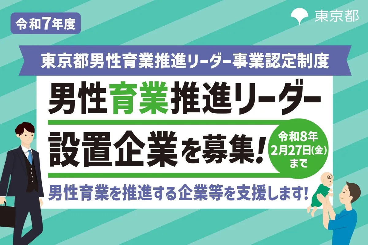 東京都では、男性の育児取得率を高めるための新たな施策として「男性育業推進リーダー設置企業」認定制度を設けています。この制度では、育児を積極的にサポートする男性をリーダーとして認定し、企業内の育業推進や課題解決を行うことが求められます。