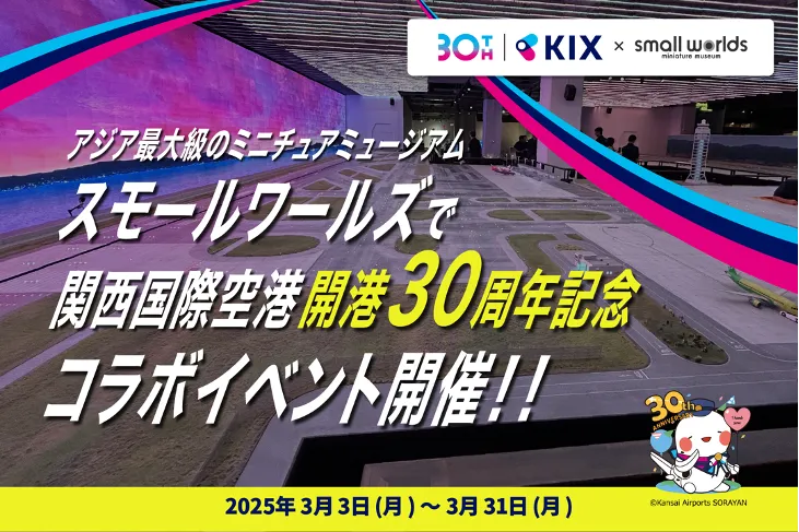 「関西国際空港30周年記念サイト」でも、詳細情報を得ることができます。皆さんもぜひ、関西国際空港の30周年をお祝いしに、スモールワールズTOKYOに足を運んでみてはいかがでしょうか!