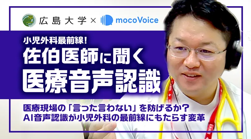 最近、mocomoco株式会社の音声認識AI「mocoVoice」の研究開発に関する対談が行われました。広島大学病院の小児外科講師である佐伯勇医師と、mocomocoの取締役CROである大西一誉氏が、医療現場におけるAIの可能性について深掘りしました。