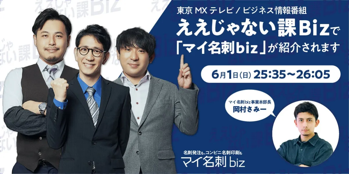 2025年6月1日、東京MXのビジネス情報番組「ええじゃない課Biz」で、Web完結型の名刺発注サービス『マイ名刺 biz』が取り上げられます。このサービスを開発したのは、東京都豊島区に本社を構える株式会社サムライソードです。