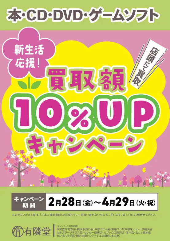 新たな季節の到来とともに、春は多くの人々が新生活の準備に取りかかる時期です。そんなタイミングで、書店の有隣堂が特別なキャンペーンを実施します。2025年2月28日から4月29日まで、対象店舗で本やゲームの店頭買取額を通常よりも10%アップするという魅力的なオファーが待っています。