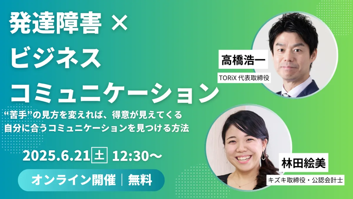 2025年6月21日、発達障害を持つ方々やその支援者に向けた無料のオンライントークイベントが開催されます。主催は就労移行支援事業所「キズキビジネスカレッジ(KBC)」で、特別なゲストとして高橋浩一氏と林田絵美氏が登壇します。イベントでは、コミュニケーションをどうやって苦手から得意に変えていくか、その具体的な方法について話し合います。