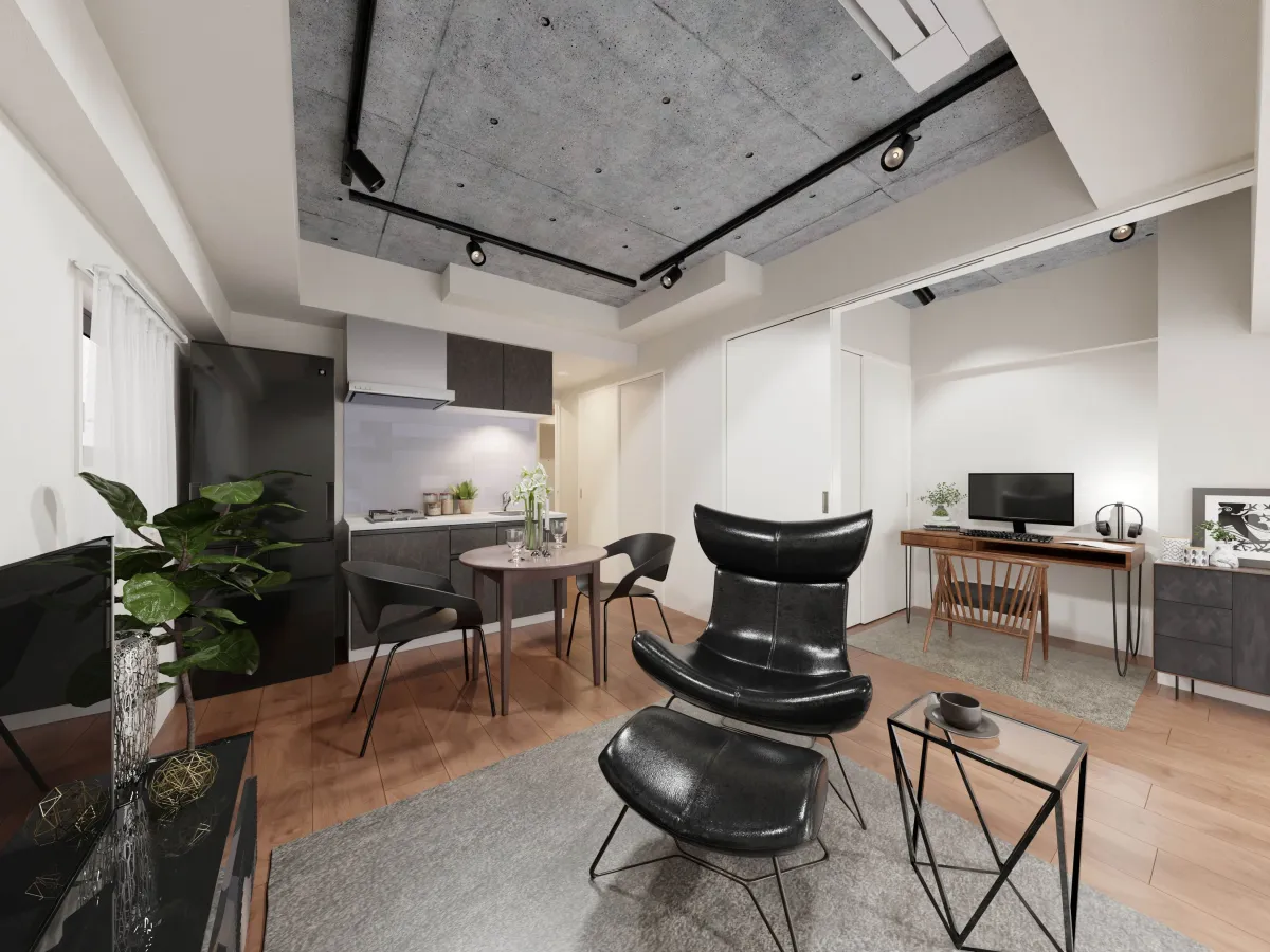 デュオフラッツ日本橋水天宮の内装は、天井がコンクリート打ちっぱなしで、ライティングレールが採用されています。これにより、カフェのようなオシャレな雰囲気を醸し出し、住む人のインテリアセンスを引き立てます。バーチャルモデルルームも配置されていますので、内覧の時間が取れない方でも気軽にお部屋の雰囲気を確認できます。