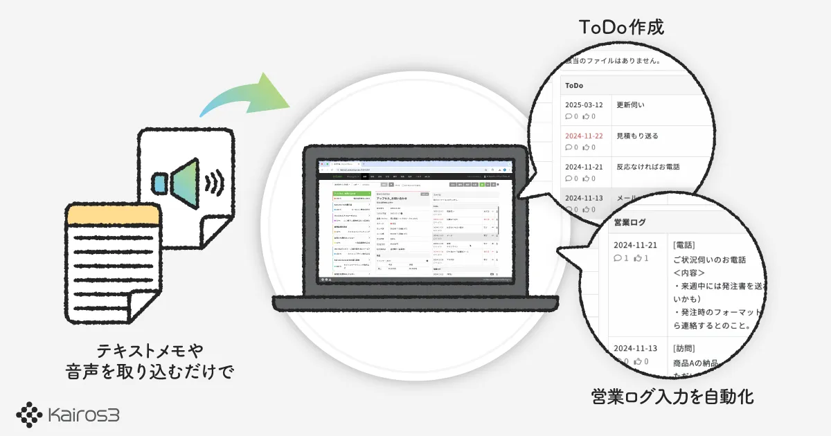 2023年3月15日、カイロスマーケティング株式会社が提供する営業支援ツール「Kairos3」の大幅なアップデートが行われました。このアップデートの目的は、営業現場での入力負担を軽減し、より効率的にSFA(営業支援システム)の運用を支援することです。新機能の導入により、現場のニーズに即した使いやすさがさらに向上しました。